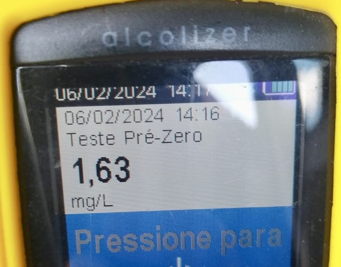 O motorista profissional, de 45 anos, foi submetido ao bafômetro, que acusou o índice de 1,63 miligrama de álcool por litro de ar expelido dos pulmões (mg/l), valor cinco vezes superior ao índice considerado crime, que é de 0,34 mg/l. Ele carregou o caminhão em Tibagi (Campos Gerais) e entregaria a mercadoria em Ponta Grossa, tendo percorrido cerca de 80 quilômetros, sob influência de bebida alcoólica.