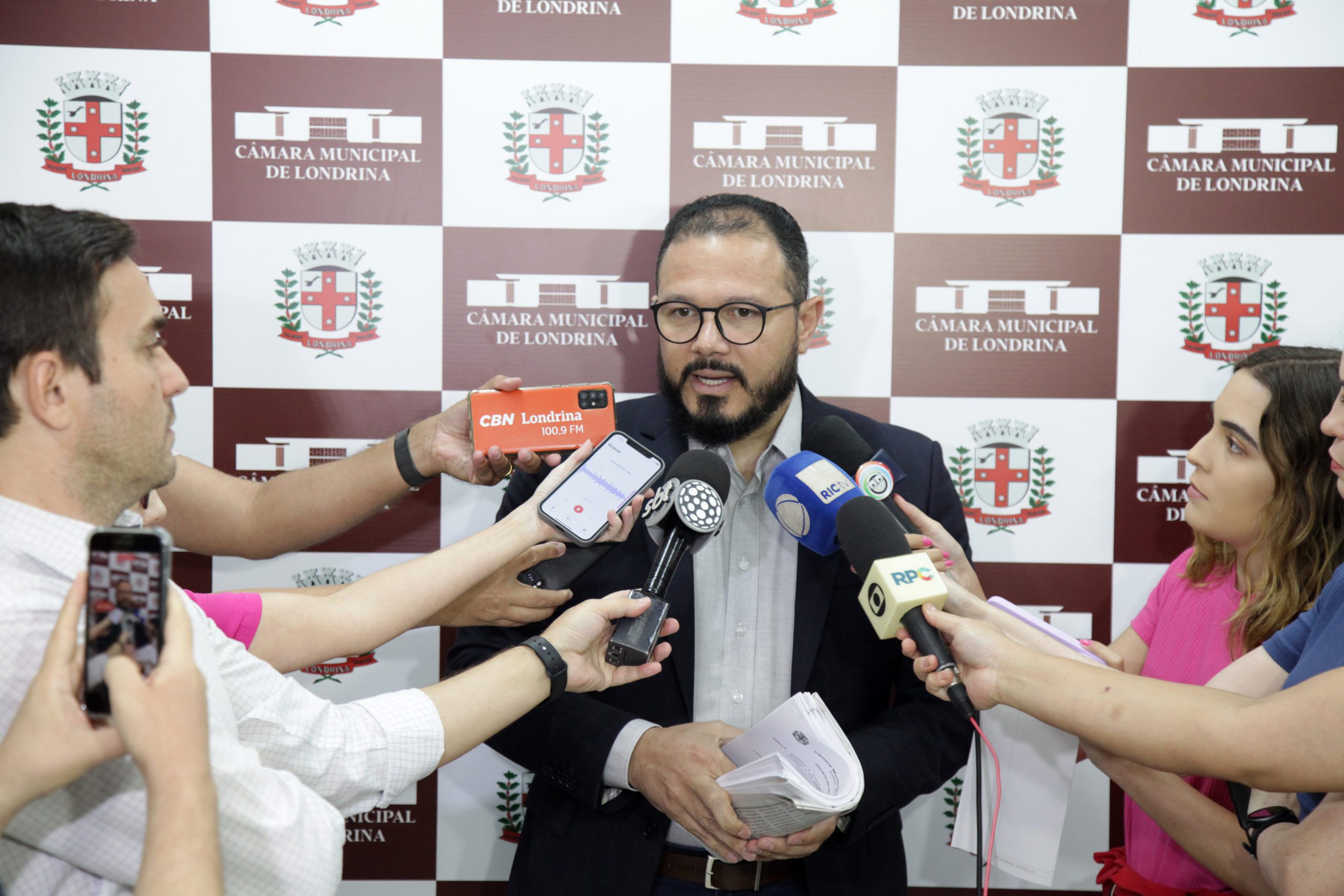 As propostas foram protocoladas pela Mesa Executiva, e a solicitação de urgência teve aprovação em plenário com 11 votos favoráveis e 5 contrários. Os projetos de lei (PLs) tratam da recomposição inflacionária nos vencimentos dos vereadores e servidores da Câmara, da fixação dos subsídios dos vereadores para a próxima legislatura (2025-2028) e de uma reforma administrativa. O presidente da Casa, Emanoel Gomes (Republicanos, na foto acima) concedeu coletiva de imprensa para explicar os PLs.