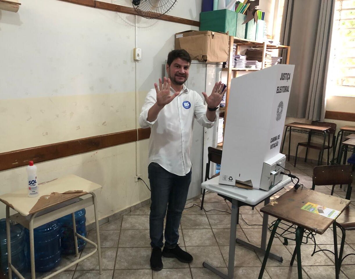 O candidato à Prefeitura de Arapongas Rafael Cita (PSD) votou por volta das 9h na Escola Municipal Cívico-Militar Professora Alzira Horvatich, na zona leste da cidade.