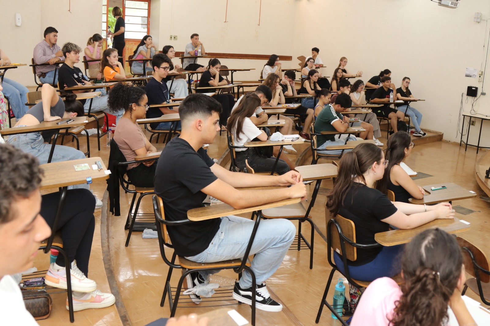 Pela primeira vez os candidatos participaram de um novo modelo de Vestibular, em fase única de dois dias, que atende adequações realizadas no Ensino Médio. Nesta segunda-feira (18), os candidatos farão a prova de Redação e a prova discursiva de Conhecimentos Específicos, sendo duas disciplinas indicadas pelos Colegiados de cada um dos 53 cursos e uma terceira de Sociologia, comum a todos.