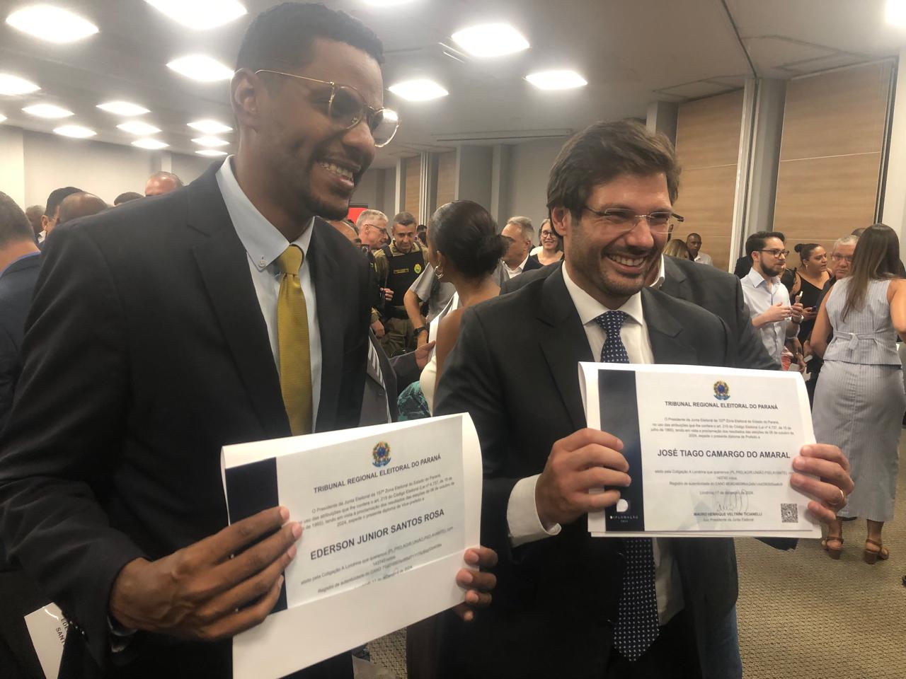 Diplomado prefeito eleito de Londrina, junto com o vice, Junior Santos Rosa (PSD), e os demais 19 vereadores eleitos para a próxima legislatura na Câmara Municipal, em cerimônia realizada nesta terça-feira (17) pelo TRE-PR (Tribunal Regional Eleitoral) na sede da OAB Londrina, Tiago Amaral (PSD) disse em coletiva à imprensa que “logo, logo” anunciará seu secretariado. A expectativa é que os primeiros nomes sejam divulgados nesta semana.