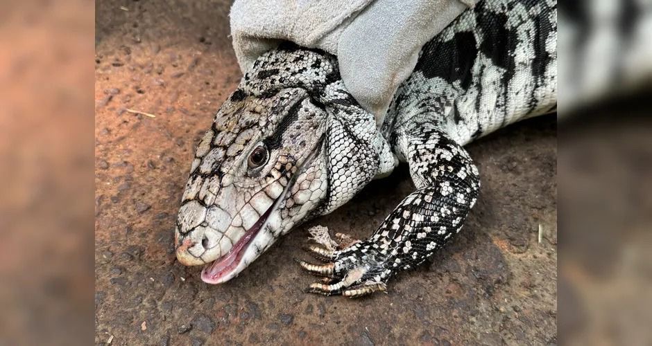 O lagarto foi capturado com segurança e posteriormente solto em uma área de proteção ambiental, retornando ao seu habitat natural.